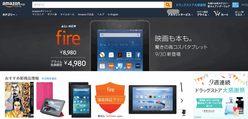 早速、PCブラウザで「Amazon」のサイトに行ってみます。