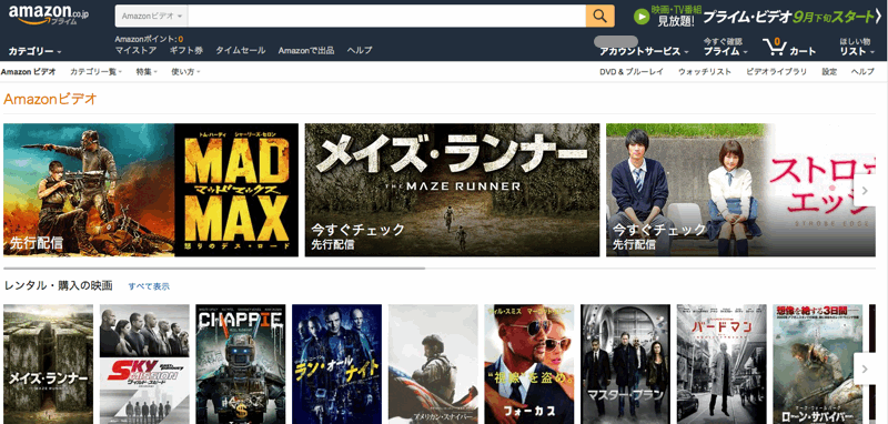 本日、9月24日からAmazonの「プライム・ビデオ」のサービスが開始されました。