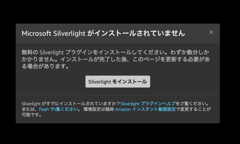 でも、再生には「Microsoft Silverlight」のインストールが必要となります。インストールされていない場合は、以下のような注意が出ます。