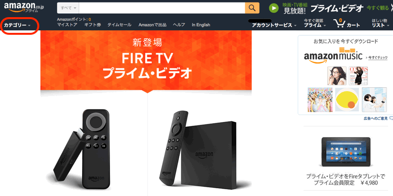 このカテゴリの中に「プライム・ビデオ」が新設されました。
