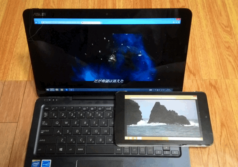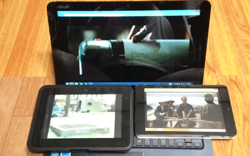 「Windows 8.1」搭載のタブレット2台で、違う作品を同時ストリーミング再生してみます。