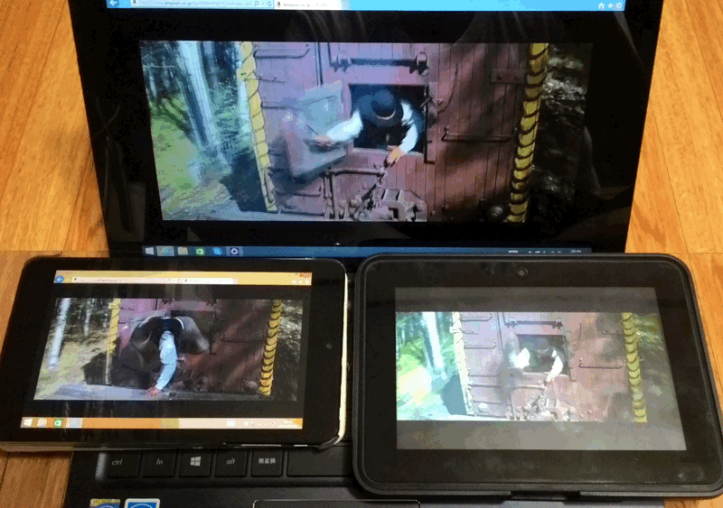 あら、問題無く再生できました。こちらもついでに「Kindle Fire HD」を追加して3台で同じタイトルを再生させてみます。