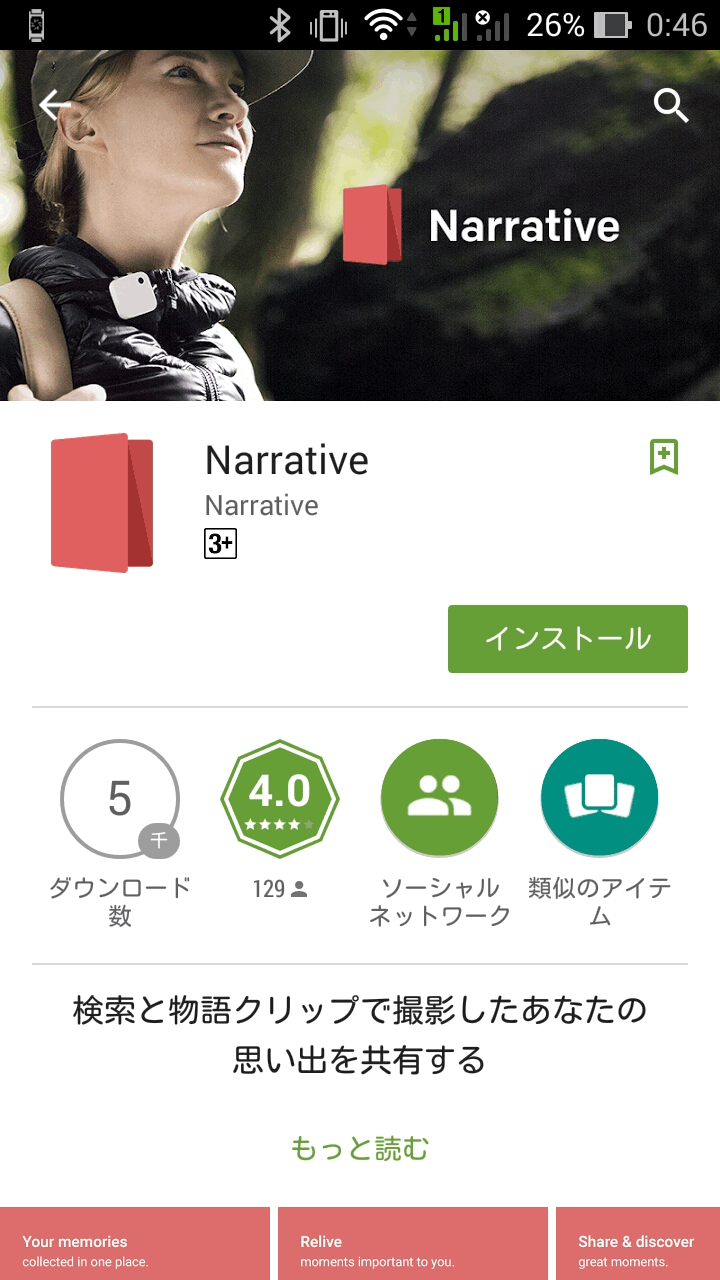 「Playストア」で「Narrative」で検索するとソフトウェアが出てきます。