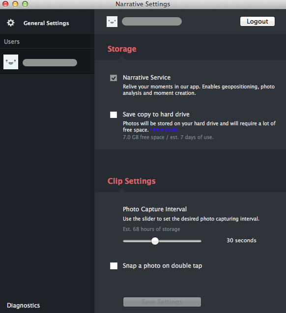 こちらにチェックを入れると「Narrative」のサーバーに転送され、スマホなどで確認できるようになります。