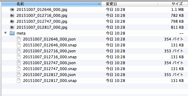 これと同じ階層にMETA情報があり、「.json」と「.snap」という見かけない拡張子のファイルがあります。