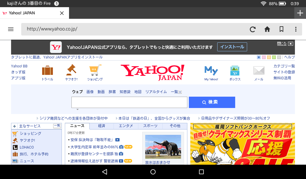 ブラウザでYahooのトップページを表示すると、以下のような感じです。