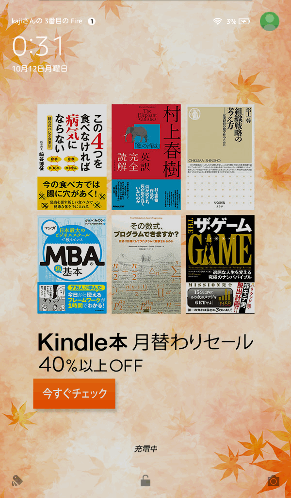 その他、気になったのは、「Fire タブレット 8GB」はロック画面でキャンペーン情報(広告)が表示されます。