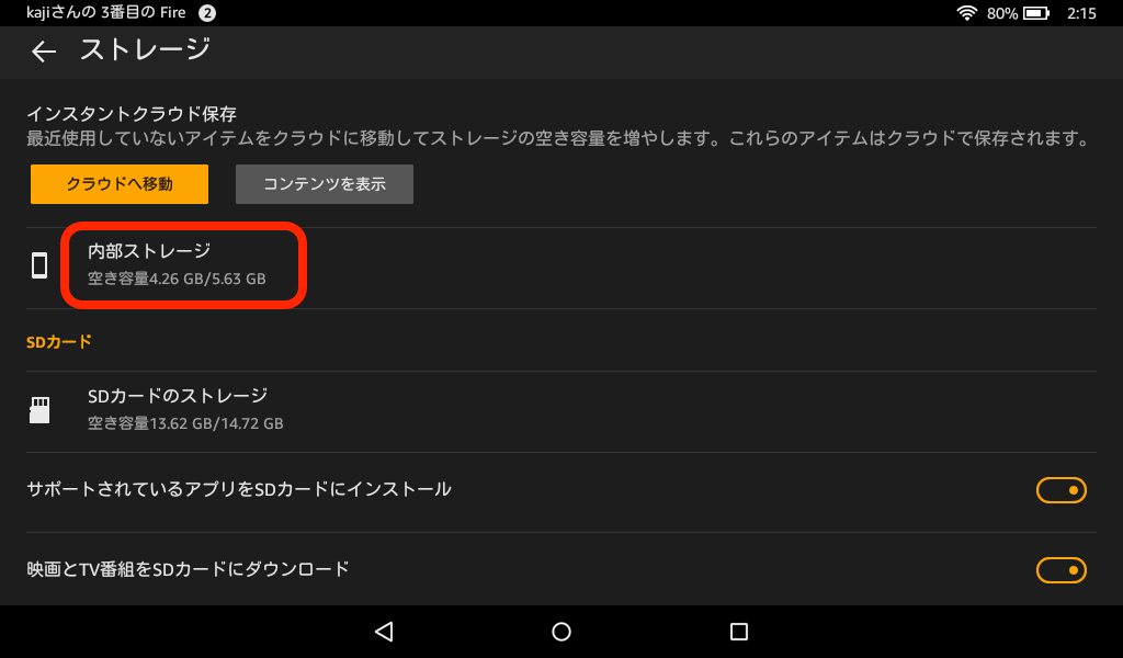 つまり、音楽や「プライム・ビデオ」などはSDカードにダウンロードできるのですが、肝心の「Kindle本」がダウンロードできません。