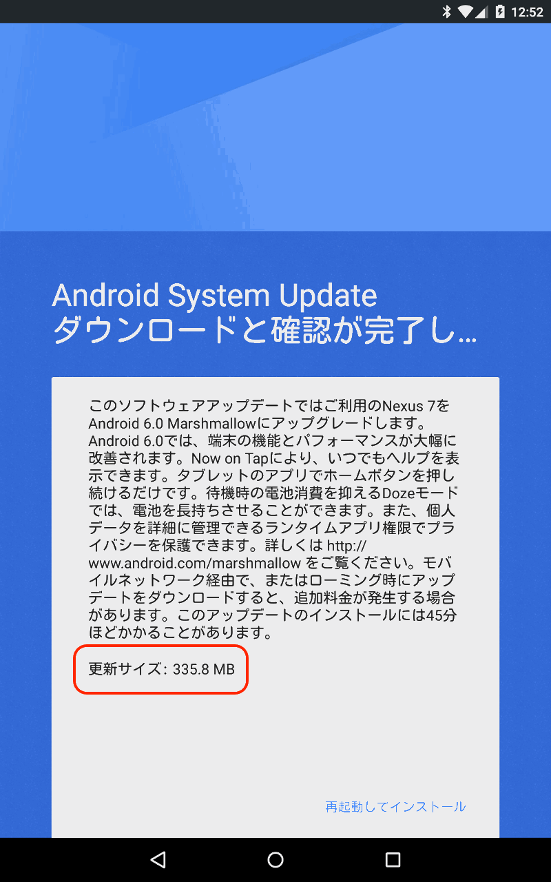ウチの使用している「NEXUS 7 2013 LTE」ですが、ようやく「Android 6.0(Marshmallow)」へのアップデートの通知がきました。
