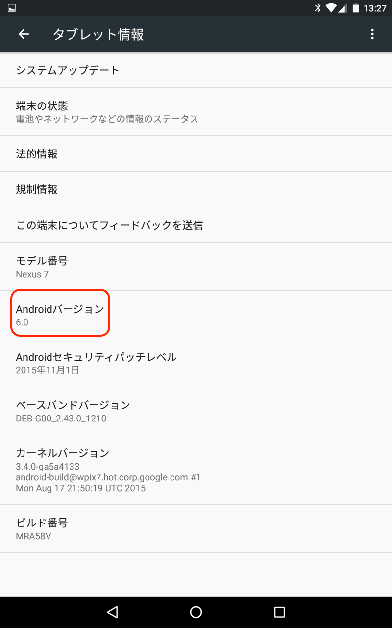ウチの「NEXUS 7 2013 LTE」も「Android 4.4」から使用して、今回「6.0」です。