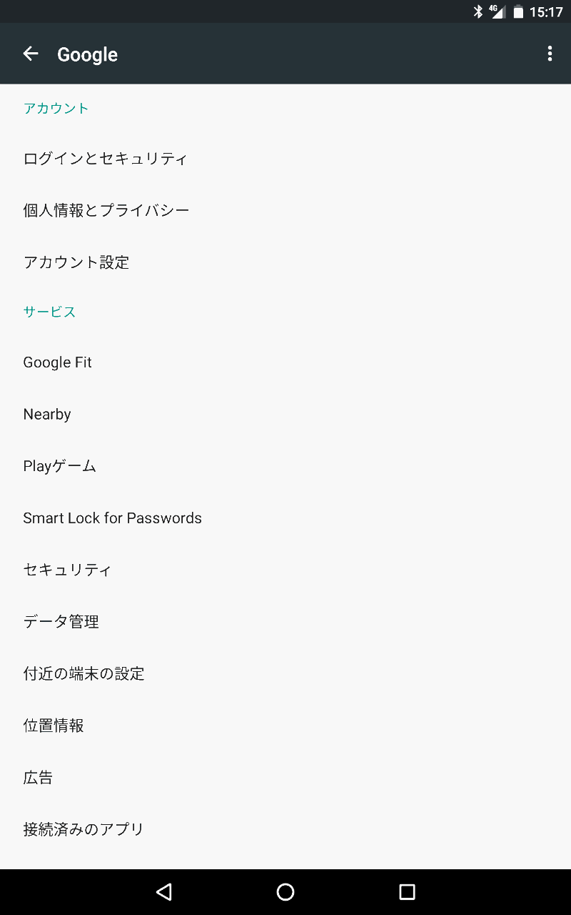 「Google」は、「Google Fit」や「Playゲーム」などの設定ができるようになっています。
