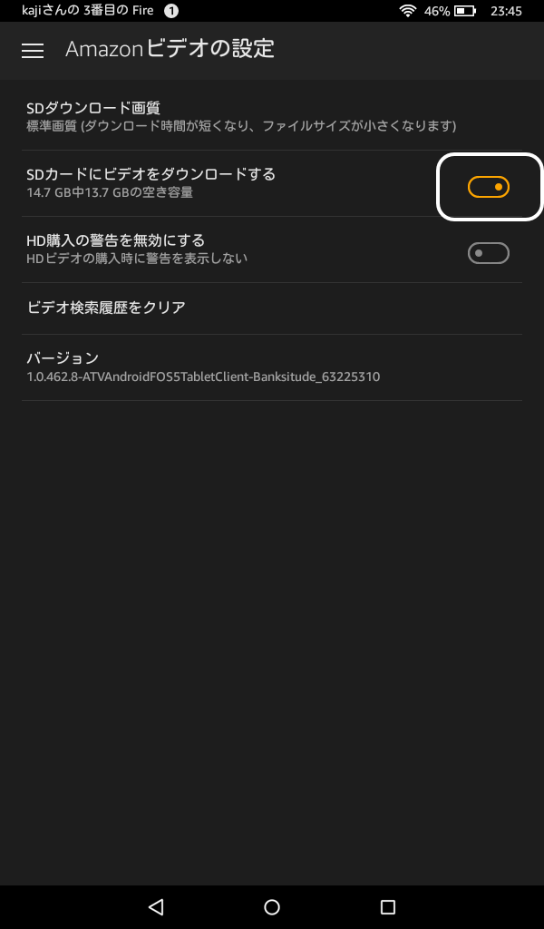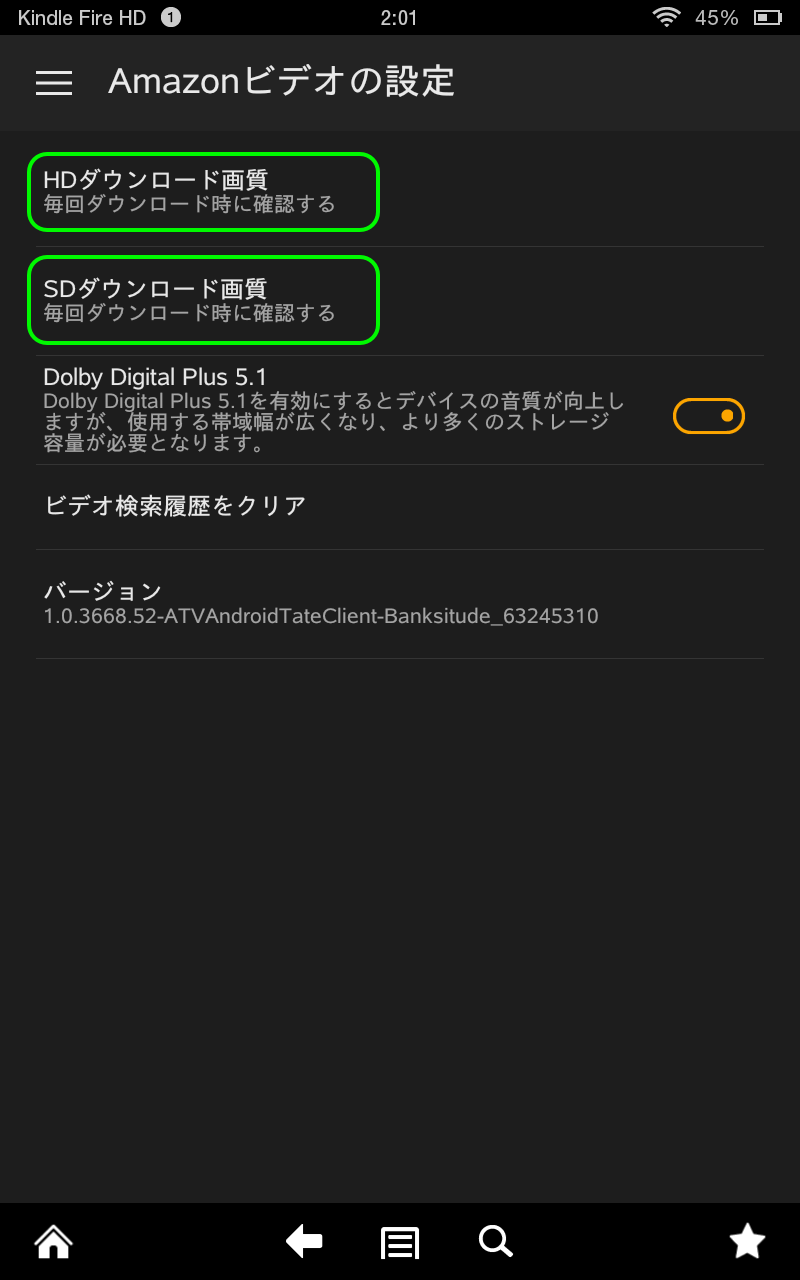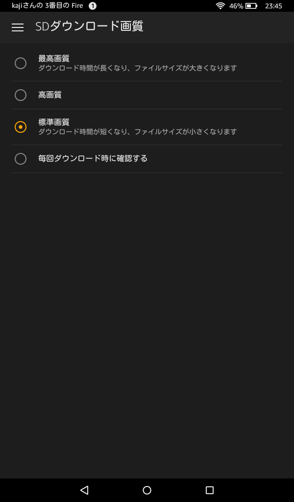 ウチの所有している、第2世代の「Kindle Fire」という位置づけにされている「Kindle Fire HD」もHD画質でのダウンロードが可能な端末です。