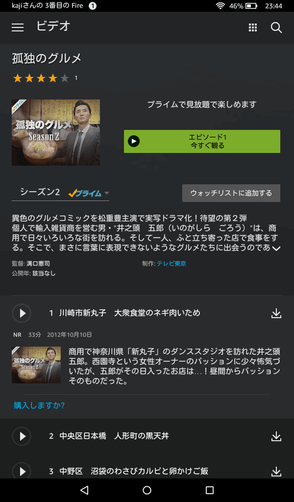 今回ダウンロードを試してみたのはテレビ番組の「孤独のグルメ」