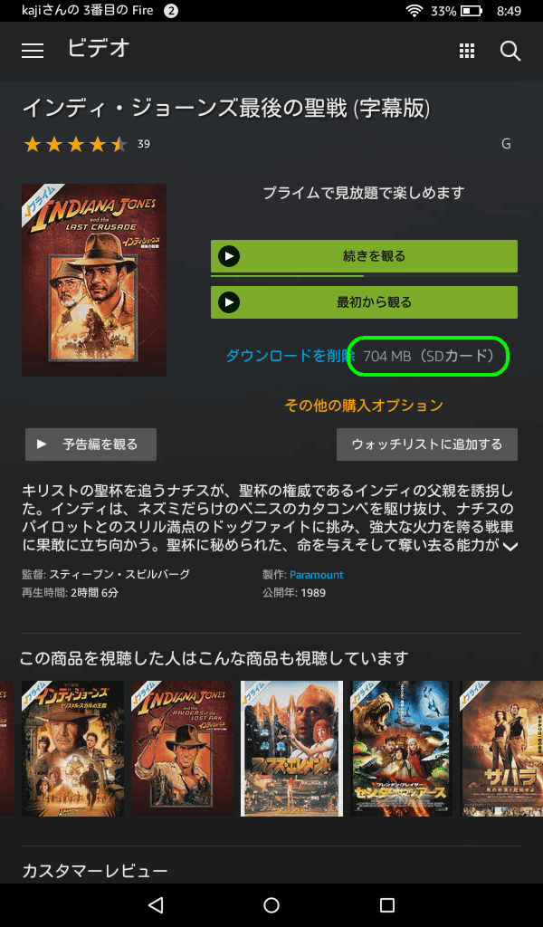 「プライム・ビデオ」はSDカードにダウンロードすることもできます。