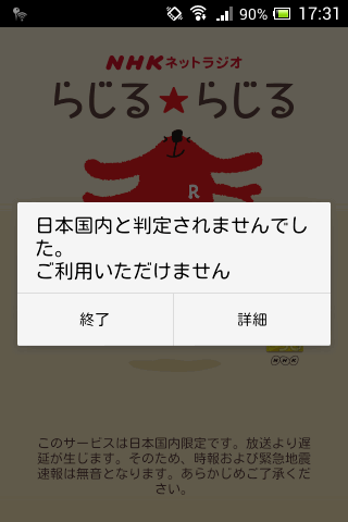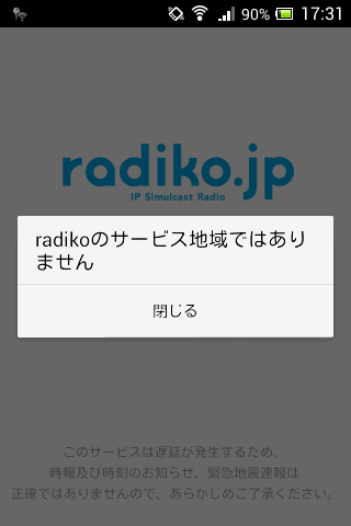 起動直後の地域判定の時点で「サービス地域ではありません」という表示が出て使用できませんでした。