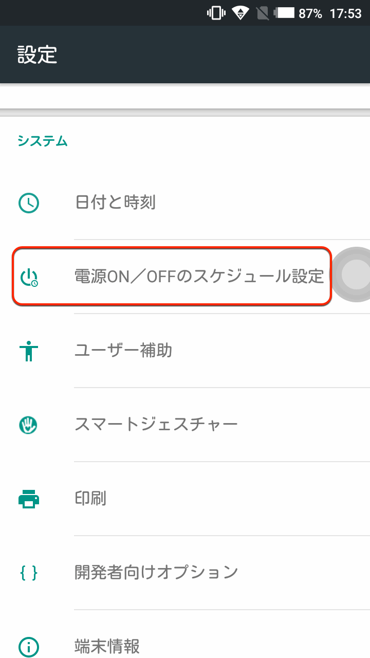 また、独自の機能として「設定」の中に「電源ON/OFFのスケジュール設定」という項目がありました。
