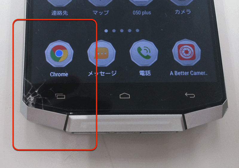 でも、動作はちゃんとしています。ヒビの部分のタッチ動作も問題無し。