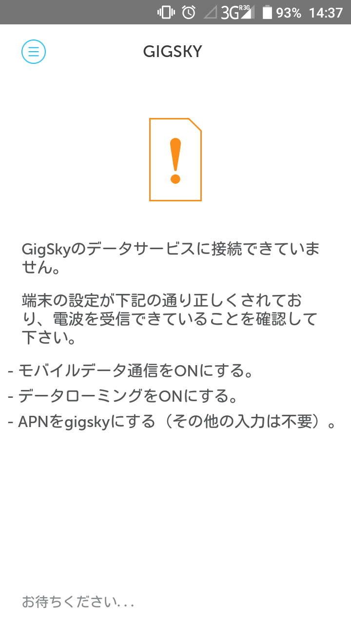 「GigSkyのデータサービスに接続できていません。」というメッセージが表示されてしまいました。