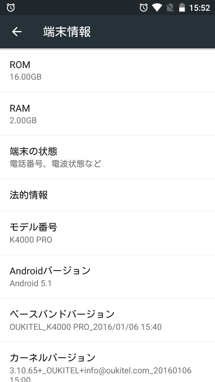 Android OSは「5.1」です。