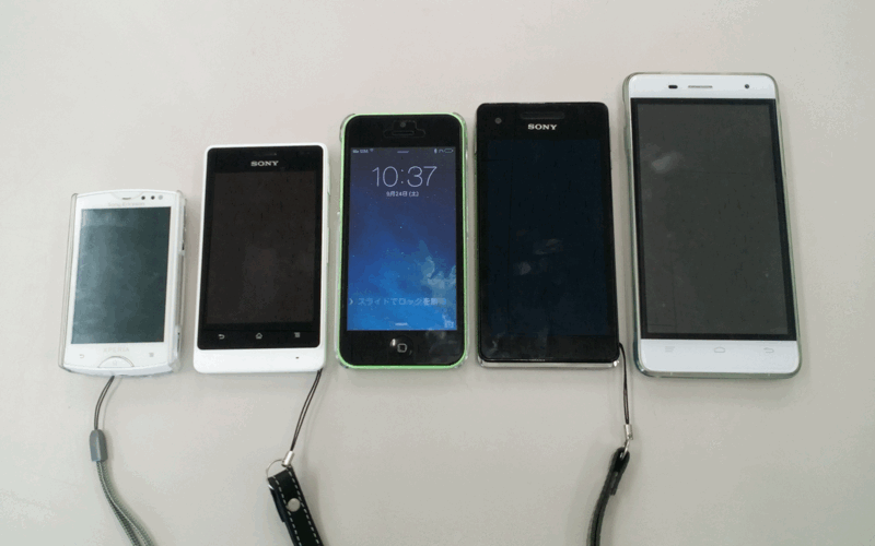「Xperia Mini」、「Xperia GO」、「iPhone 5c」、「Xperia V」、「OUKITEL K4000 Pro」です。