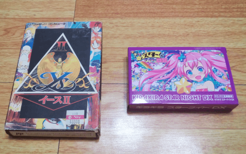 パッケージ自体は当時のファミコンソフトと比べると少し小振りのサイズ。手元にあった「イース2」と比べてみました。
