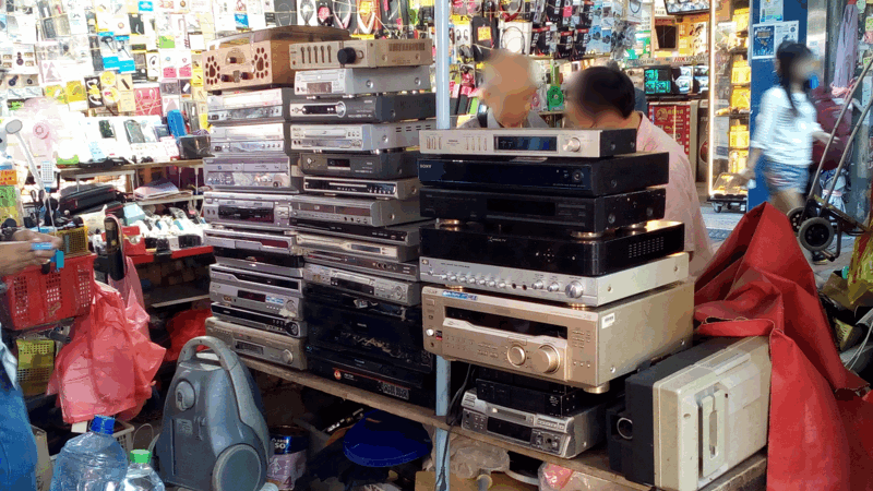 日本製の古いアンプやVHSのビデオデッキを扱っているお店があったり、、、