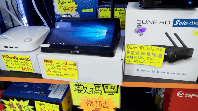 PIPOの「TV BOX」。一番安いモデルで「799香港ドル」=約11,000円ぐらい(2016年10月末のレート)