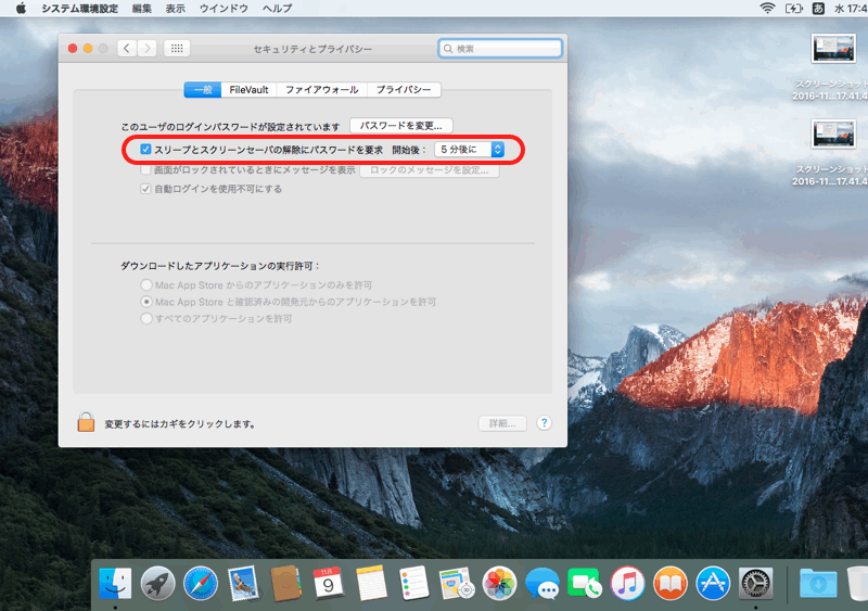これで、スリープから復帰する時もパスワードの入力が不要になりました。
