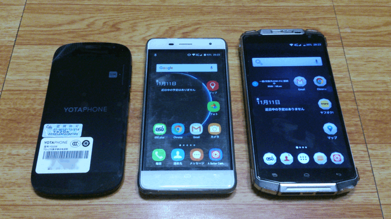 左から「YotaPhone 2」、「OUKITEL K4000 Pro」、「OUKITEL K10000」