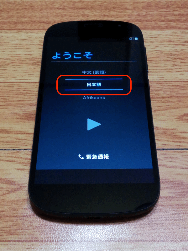 電源を入れてみると、言語選択で普通に「日本語」が出てきました。