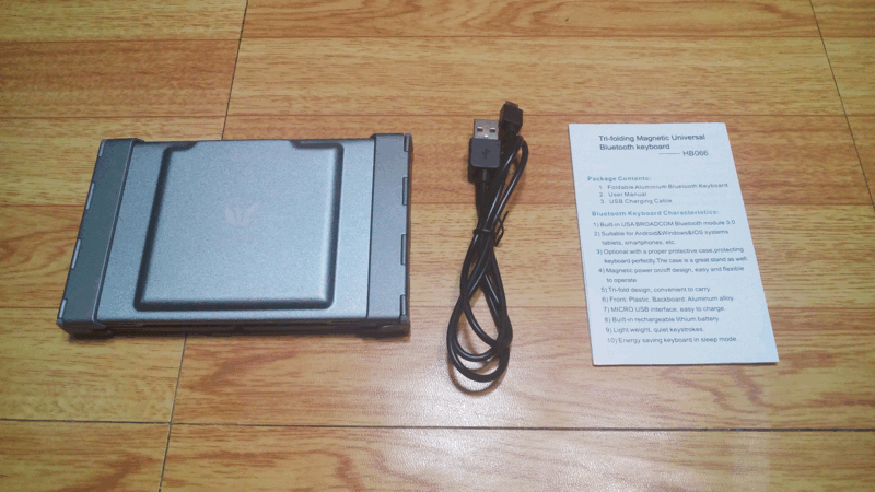 パッケージの中には、キーボード本体とUSBケーブル、説明書(英語表記)が入っていました。