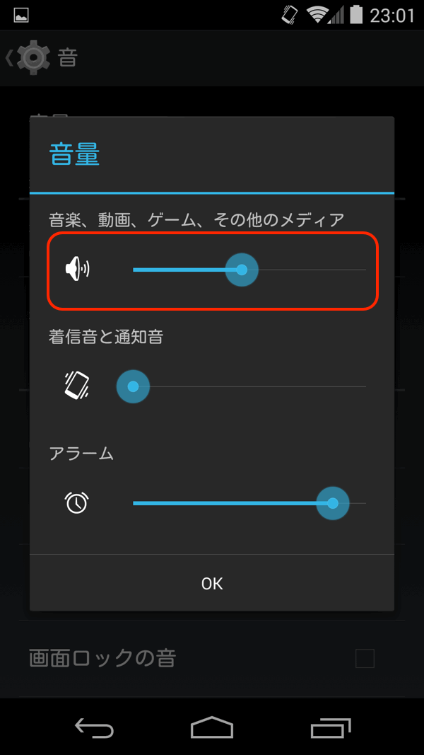 音量はメインディスプレイの時と同じ「50%程度」で行いました。