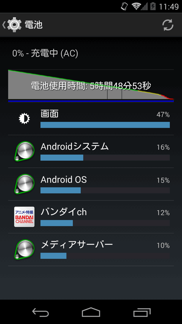 今回のチェックは、購入したときの状態に「バンダイチャンネル」のみをインストールした状態で行いましたので、その他のバックグラウンドで定期的に動作するようなアプリケーションがインストールされている場合等は、計測結果が異なってくるかもしれません。