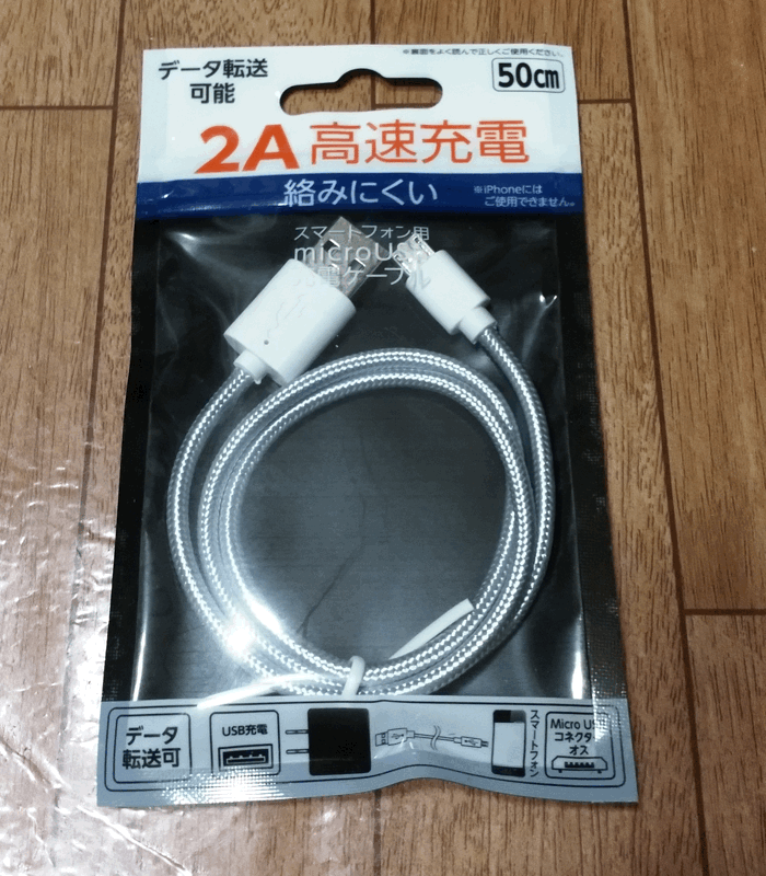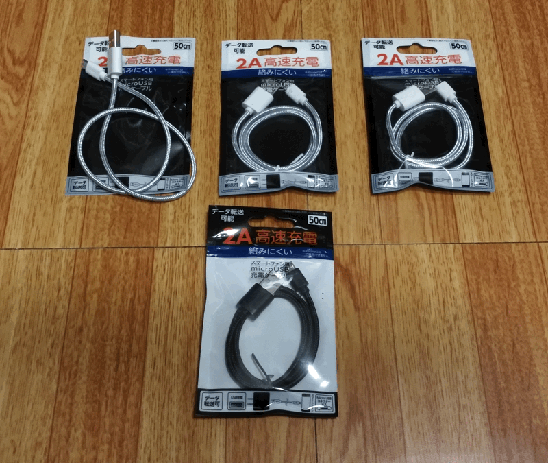 「Micro USB」側が、わずかに長いケーブルが身近な100円ショップで見つかったのは意外でした。