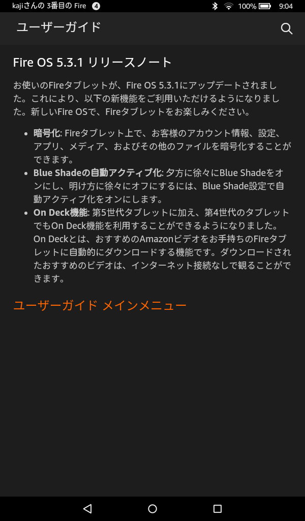 最近話題にしていませんでしたが、このタブレットのOSは、現在「Fire OS 5.3.2.1」になっています。