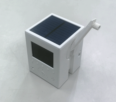 背面には液晶パネル、側面に、発電用のハンドルがついています。