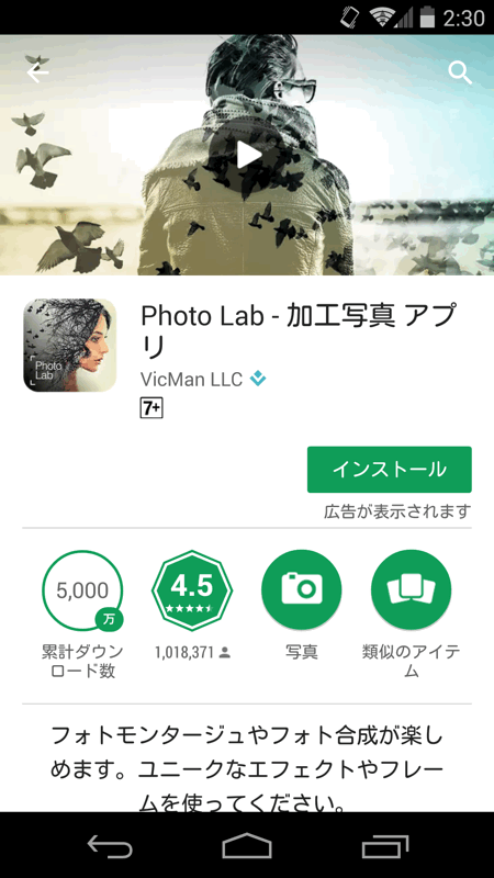 そこで、目をつけたのが「Photo Lab」というアプリ。