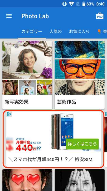 それから有料版の「Photo Lab PRO」にすると、広告も一切表示されなくなって、スッキリ使いやすくなりました。