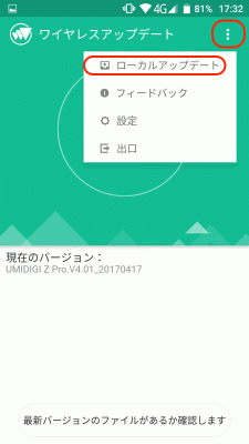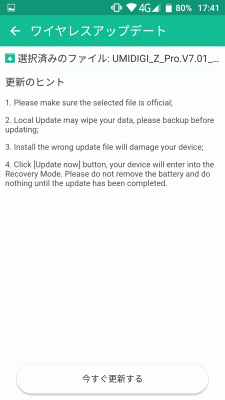 「UMIDIGI_Z_Pro.V7.01_20170710_update.zip」のファイルをダウンロードして、スマートフォンに転送。