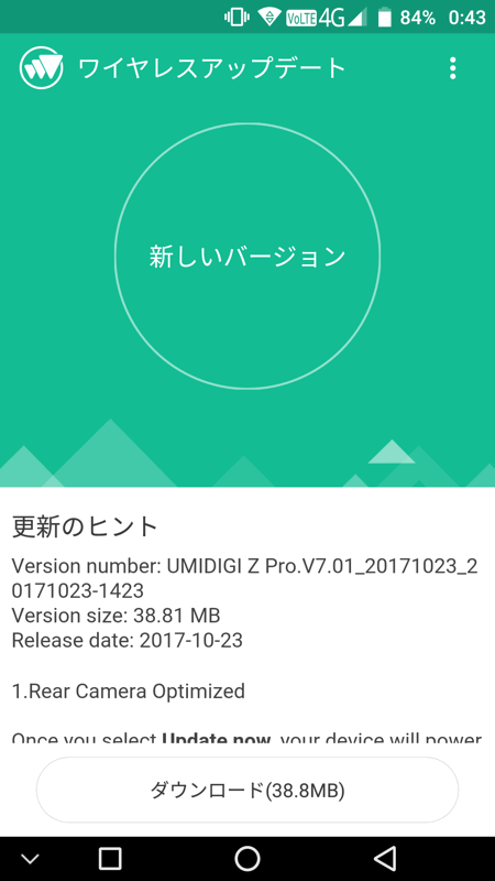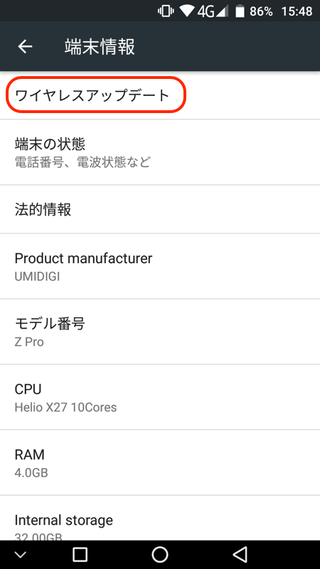 「UMIDIGI Z PRO」 をAndroid 7.1.1(Nougat)にアップデートする