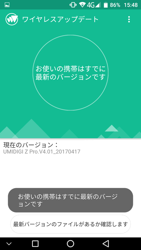 「Android 7.0」が配布されてから本格的に使おうと思って、気長に待っていたのですが、「設定」内の「ワイヤレスアップデート」を確認しても、「お使いの携帯はすでに最新のバージョンです」と表示されるのみ。
