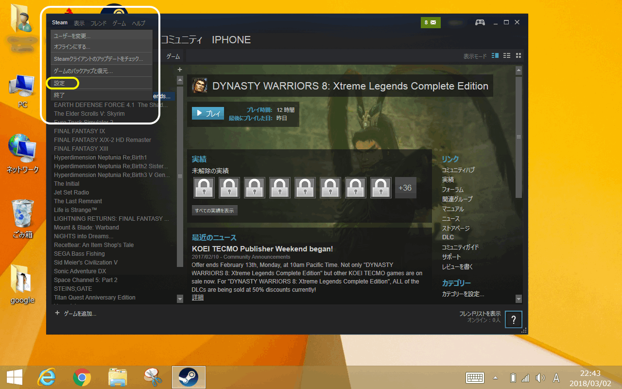 次にPCゲームと言えば、真っ先に思い浮かぶのが「Steam」