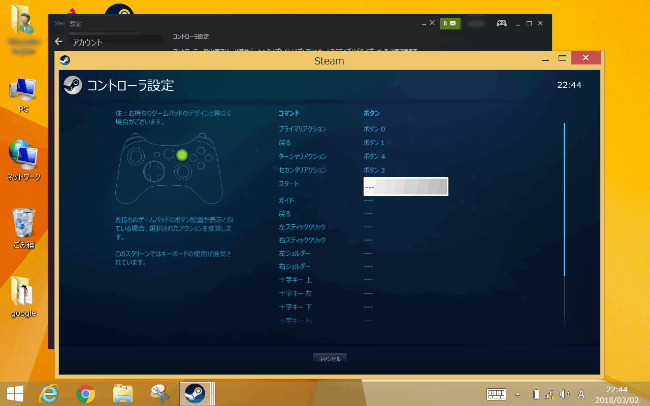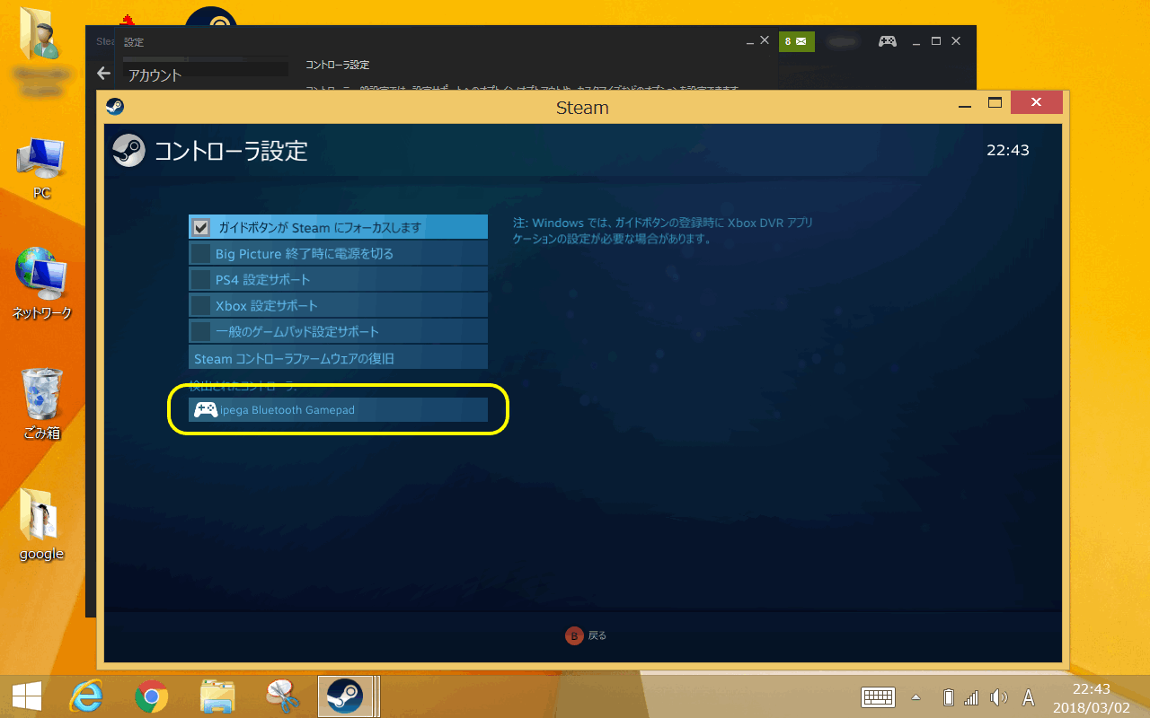 「Steam」のアプリケーションをインストールし、コントローラーの設定を行います。