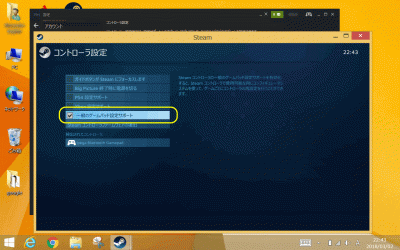 チェックを入れると、アナログスティックでマウスカーソルを動かしたりできるようになります。(Steamのアプリケーションが起動している場合のみ)