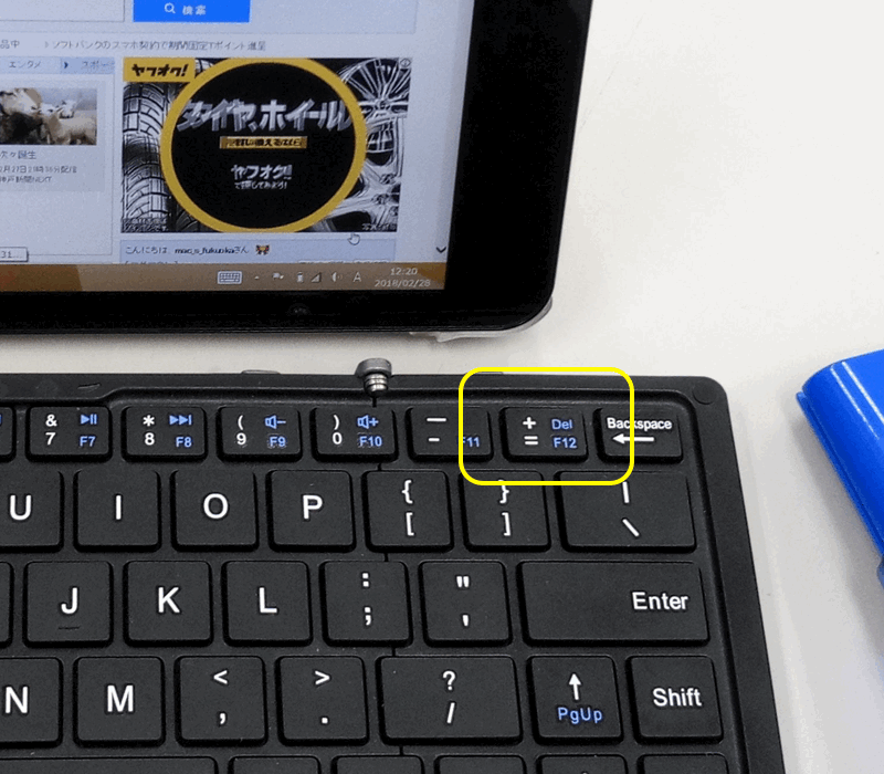 「F12」を入力するためには、「Fn」+「=」という2つのキーを押す必要があります。