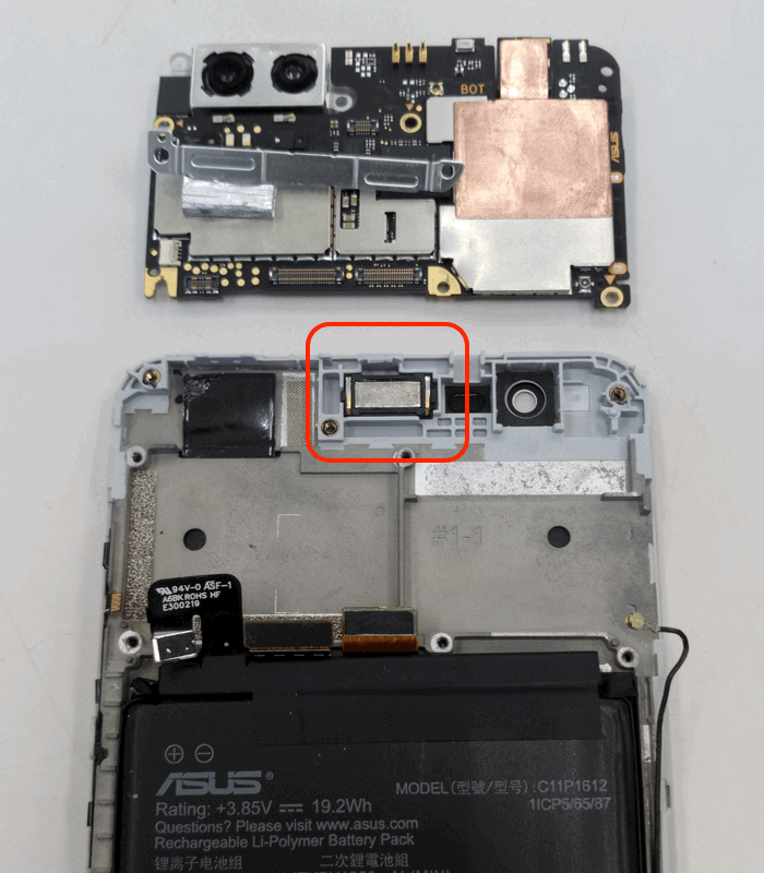 さて、「ZenFone Zoom S」の「イヤースピーカー」ですが、これまで発売された「Zenfone」シリーズのものと共通部品のようです。