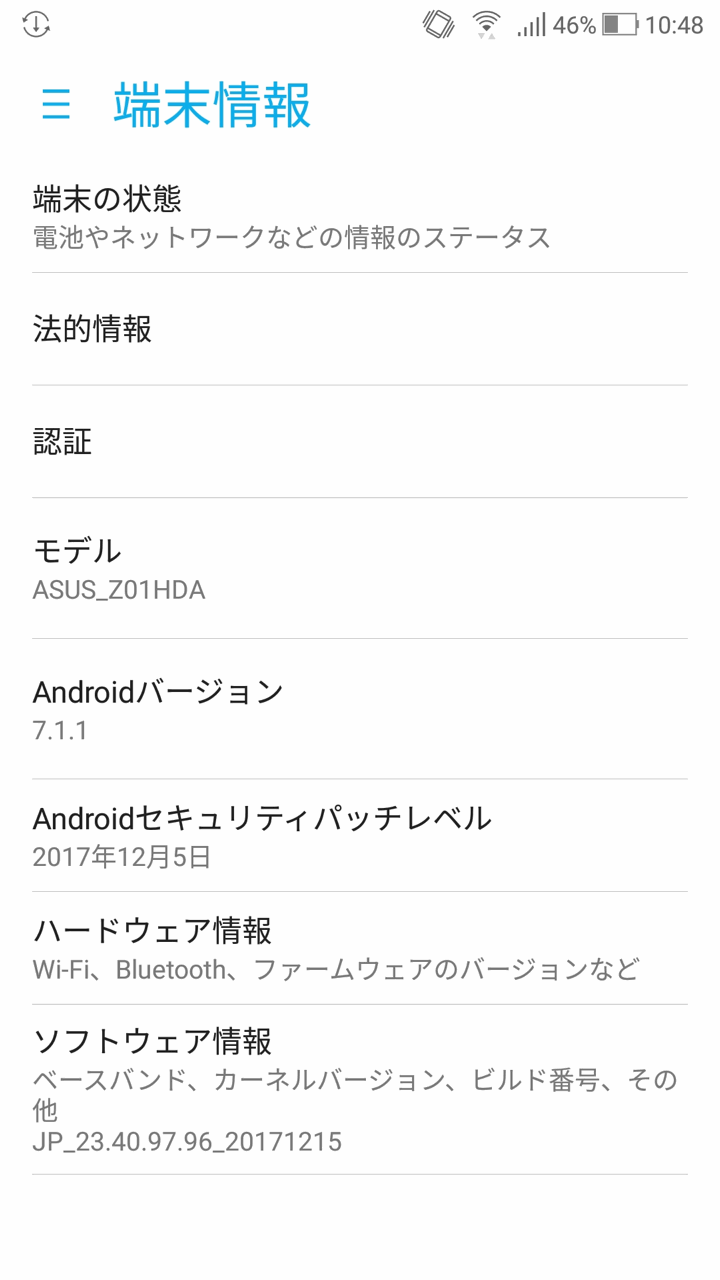 Android OSは「7.1.1」です。