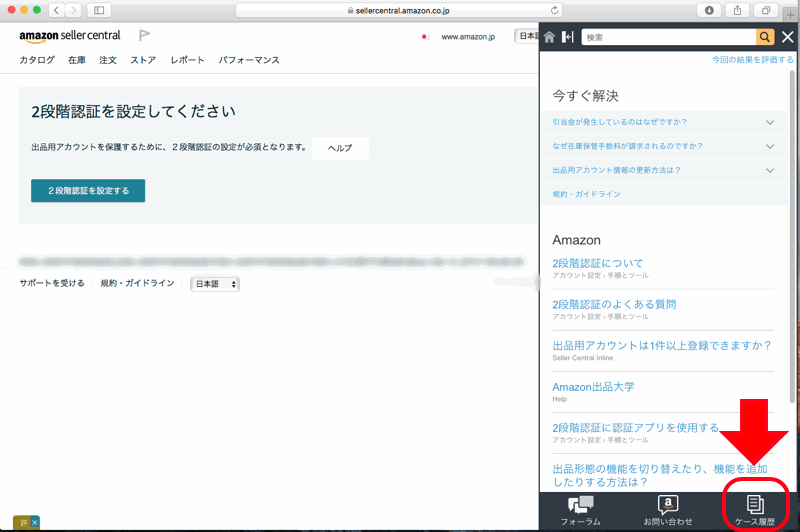 「セラーセントラル」のヘルプの「ケース履歴」で扱われることになりました。