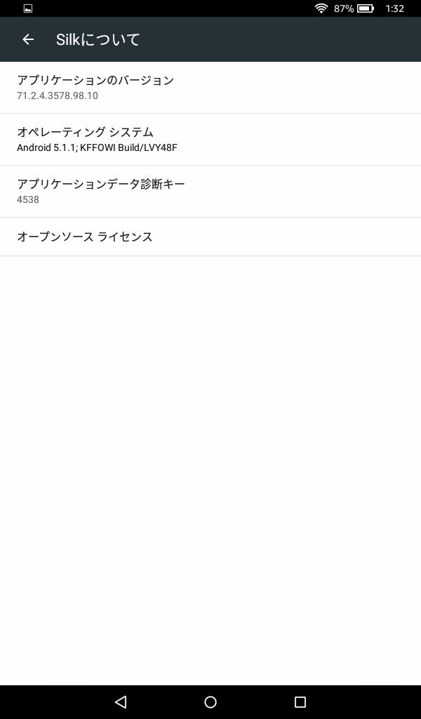以下の画像がウチの所有している「Kindle」の「Silk」のバージョンです。
