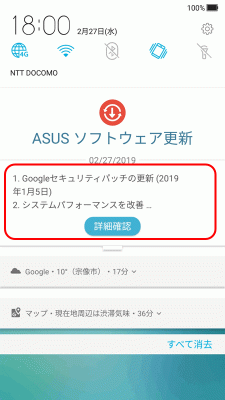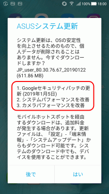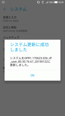 現在、メインで使用しているスマートフォンの「ZenFone Zoom S(ZE553KL)」ですが、先日、久しぶりにシステム更新の通知が来ました。